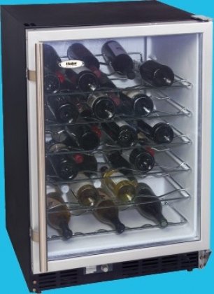 The Haier 50 Bottle Capacity Built-in wine cooler is the latest addition by Haier. This wine refrigerator offers the versatility of being built right into your cabinet or used as a freestanding unit. The tinted, thermal-tempered flat glass door protects your wine from external UV rays. A heavy duty brushed metal handle, and adjustable thermostat make this a great solution for your wine storage needs. Sleek and stylish, the Haier 50 Bottle Wine Cooler-Silver Door is the ideal place to store your extensive collection of finely aged wines. This black cabinet with a silver door has an adjustable thermostat control to allow you to chill either red or white wine. With a bottle capacity of 50, it has six chrome storage shelves, leveling legs, a reversible door, and soft interior lighting..Read more- Versatile Built-In or Free Standing Unit